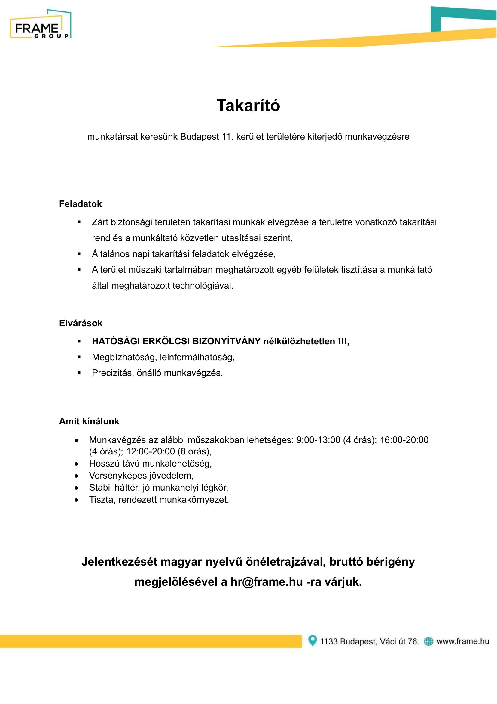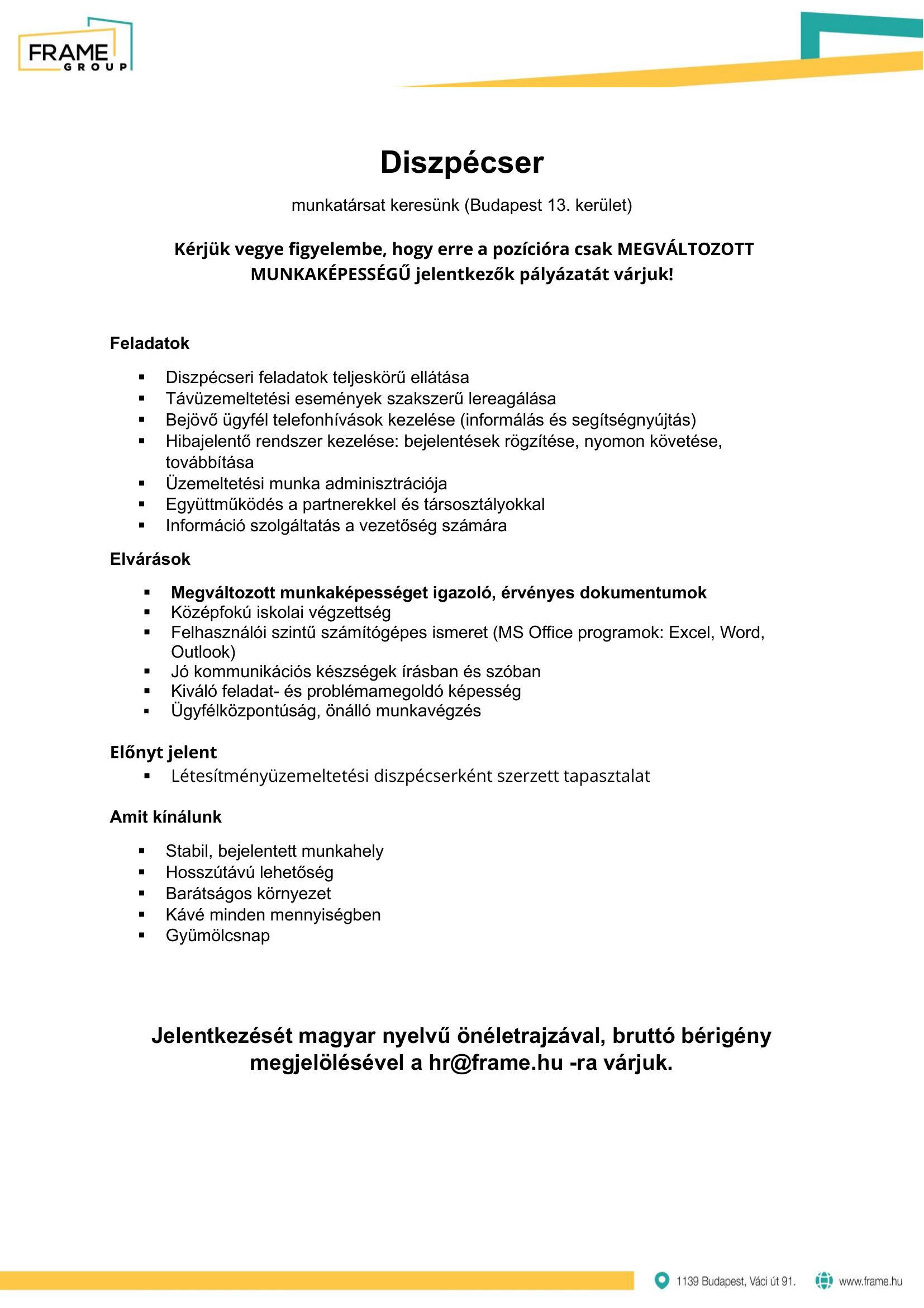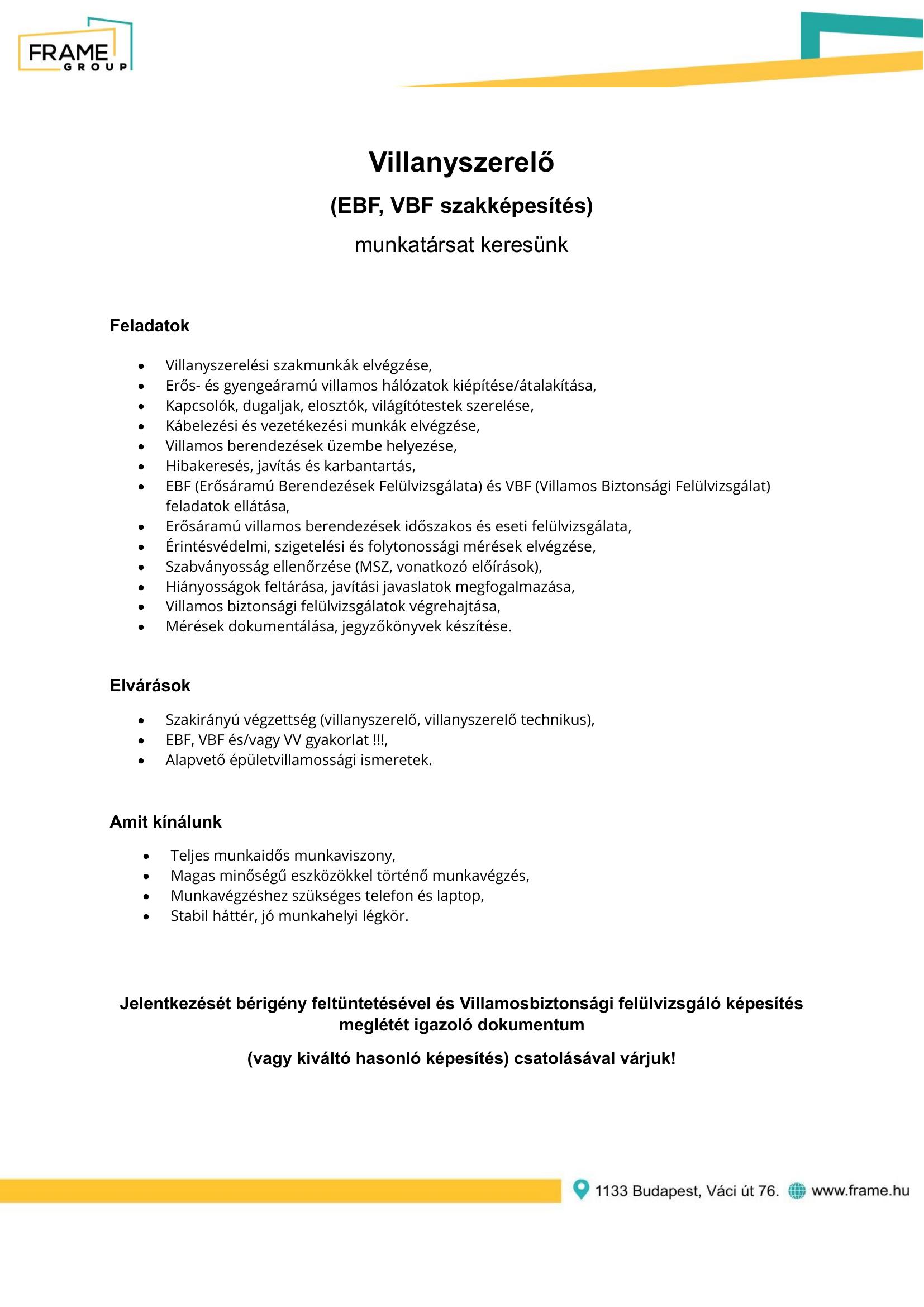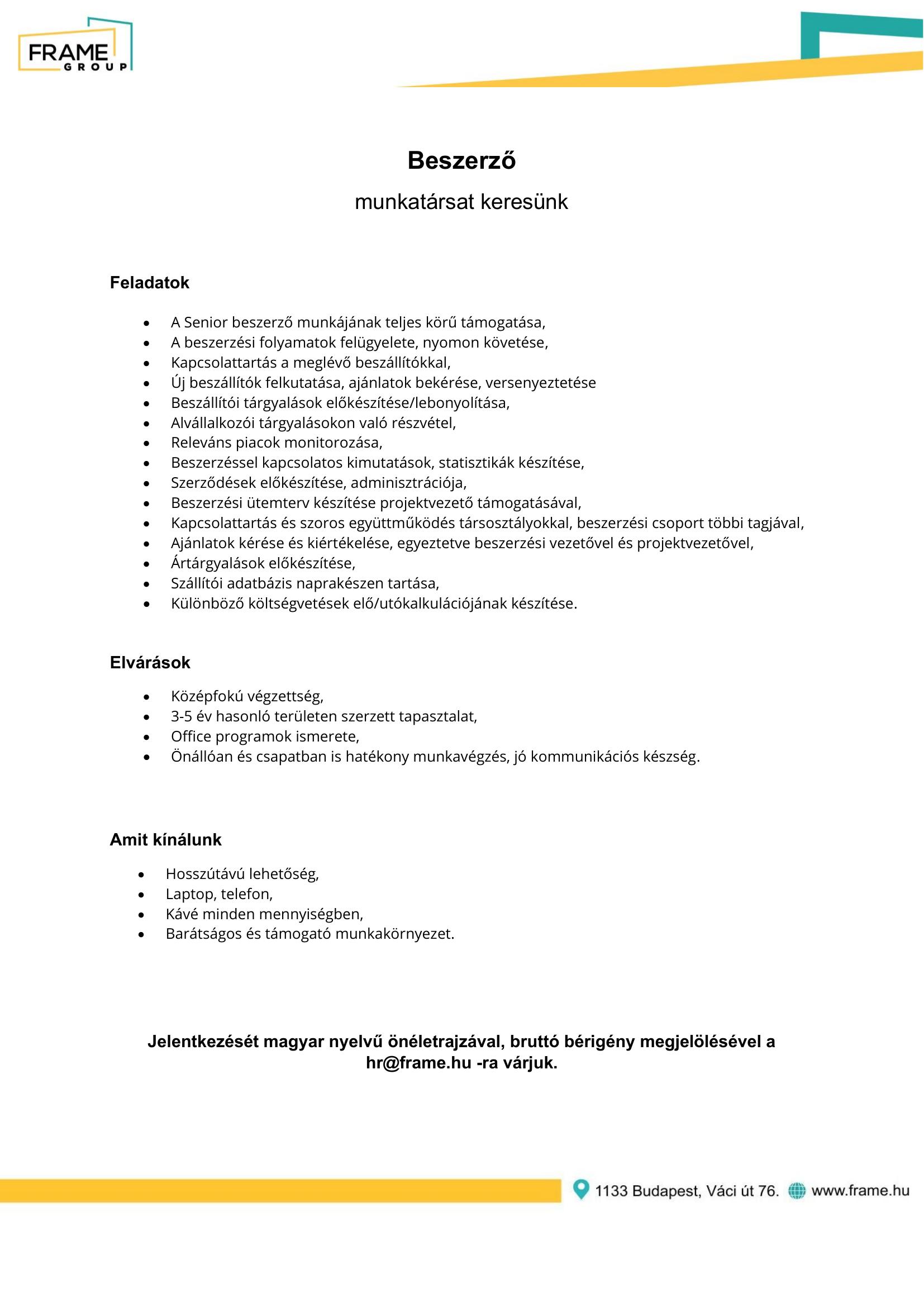 Önéletrajzát a HR@frame.hu e-mail címre várjuk!